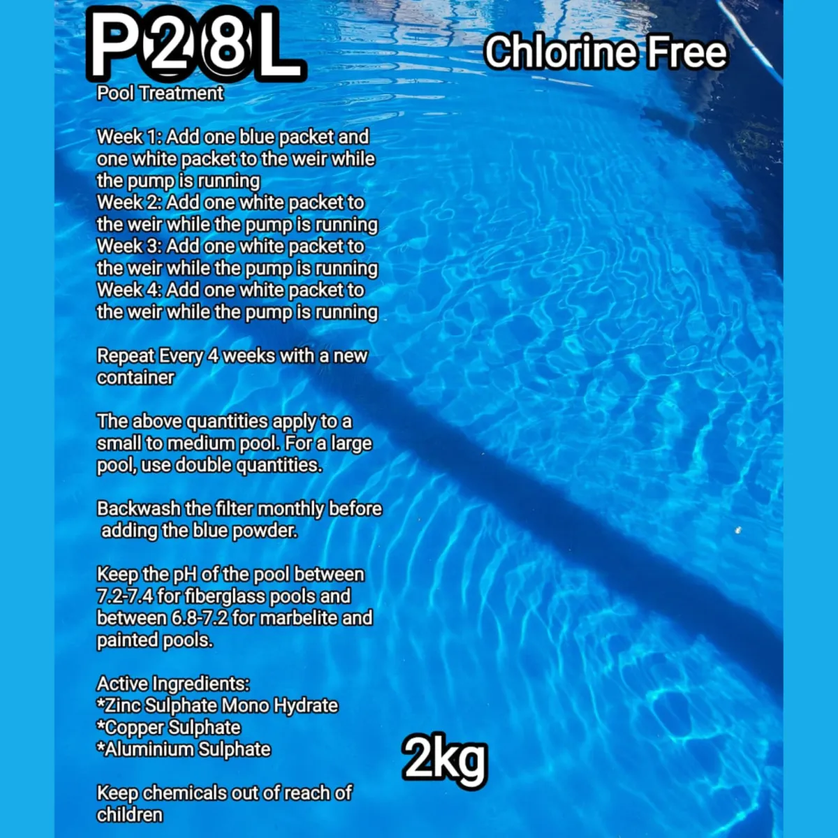 Pool28 is a premium, chlorine-free pool treatment designed to keep your water crystal clear for weeks at a time.